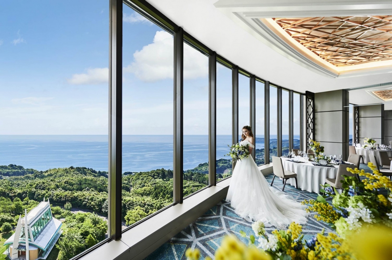 この披露宴会場の一番の魅力は、オーシャンサイドに配された窓から眺める事が出来る、きらめく雄大な相模湾の景色。